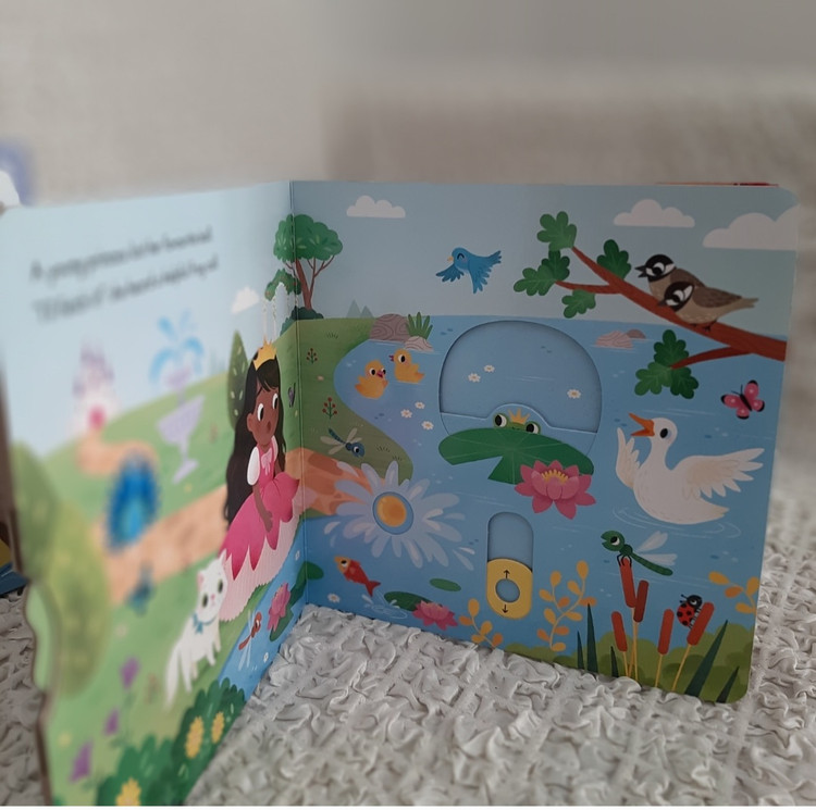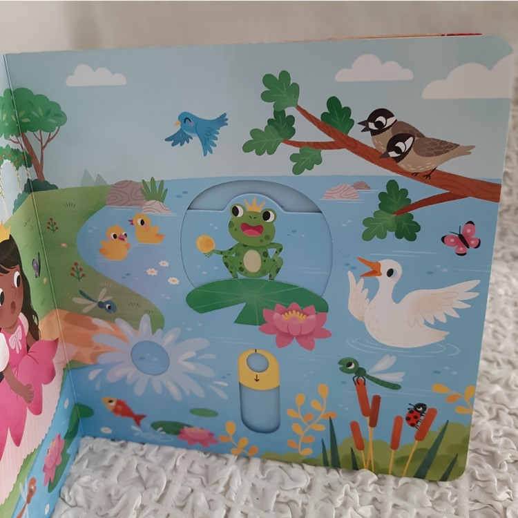 کتاب داستان شاهزاده قورباغه با بیانی ساده و جملات کم داستان را با بخشهای حرکتی به تصویر می کشد.