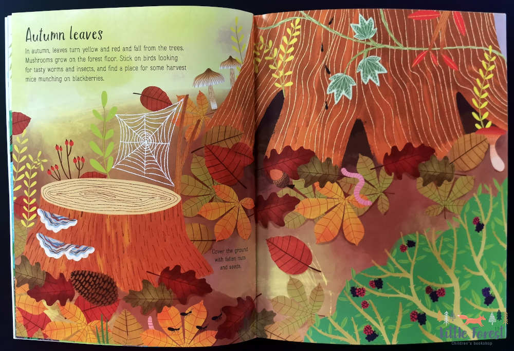 از یک چمنزار با گلهای وحشی گرفته تا جنگلهای برفی، کودکان در حین تزئین صحنههای این کتاب مصور زیبا، دوست دارند در مورد فصول یاد بگیرند. با بیش از 200 برچسب از حیوانات، گیاهان، گل ها و حشرات و پیوند به وب سایت های ویژه انتخاب شده برای کلیپ های ویدیویی و فعالیت ها