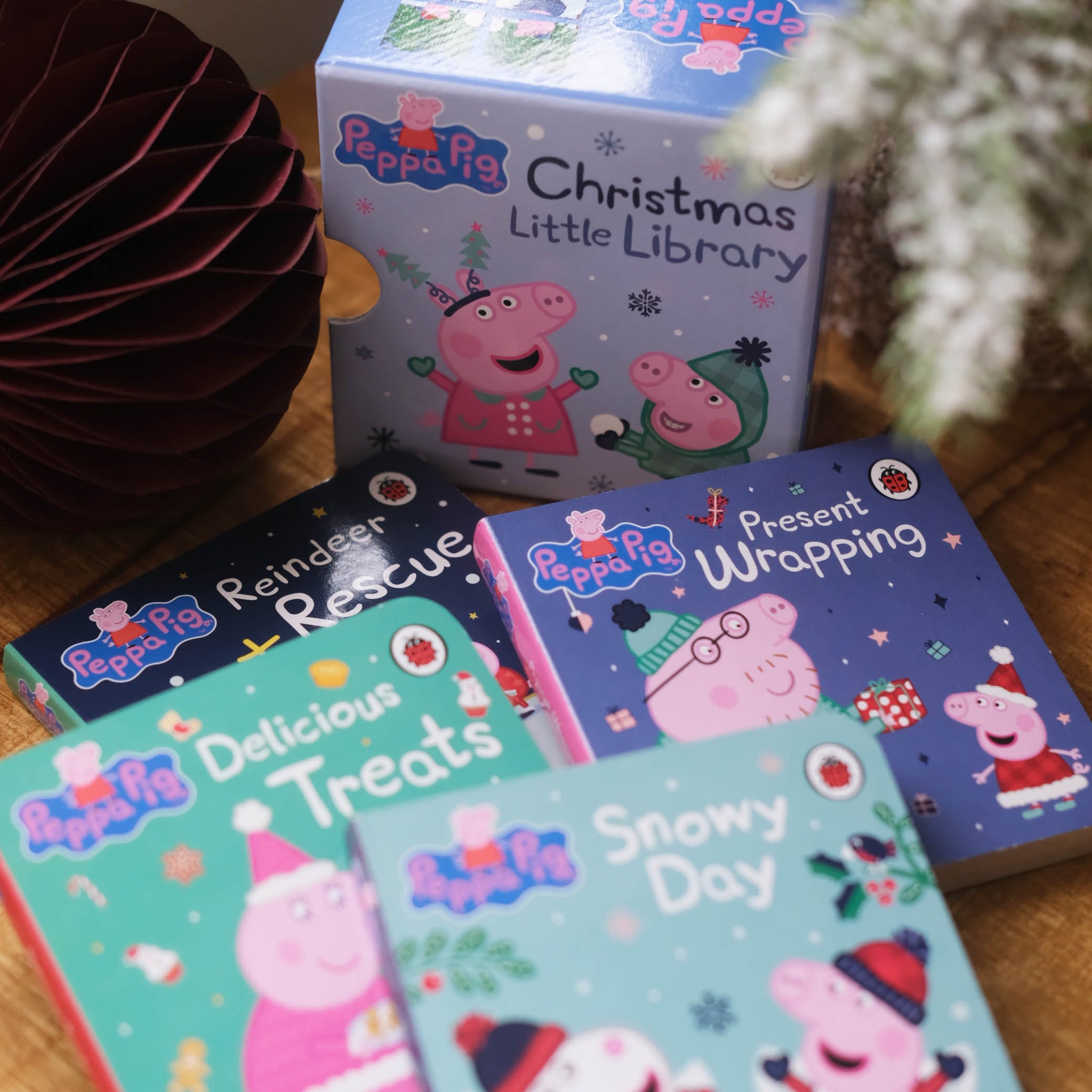 به پپا و دوستانشان بپیوندید تا به نجات گوزن شمالی بابانوئل کمک کنند، غذاهای جشن بپزند و در برف بازی کنند! این مجموعه که در یک جعبه کشویی ارائه شده است، یک هدیه ایده آل برای کریسمس است. پس از اتمام خواندن، پشت چهار کتاب یک اره منبت کاری اره مویی درست کنید! این مجموعه کوچک کتاب با چهار داستان کاملاً جدید برای بزرگترین طرفداران پپا عالی است.