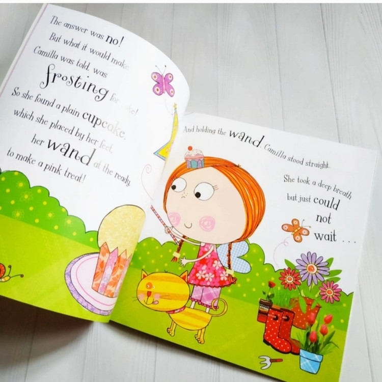 کامیلا پری کیک کوچک هیجان زده است که اولین چوب دستی خود را به او می دهند، اما عدم تجربه او منجر به نتایج نگران کننده ای می شود! با این حال، با پشتکار و کمک دوستانش، او در نهایت خوشمزه ترین تاپینگ کاپ کیک را درست می کند! متن ساده و قافیه دار و تصاویر زیبا و پر جنب و جوش لارا اِد با هم ترکیب شده و دنیای هیجان انگیز Camilla the Cupcake Fairy را ایجاد می کند. کودکان خردسال عاشق خواندن ماجراهای کامیلا و استفاده از تخیل خود برای ورود به دنیای کیکها، پریها و درخششهای او هستند.