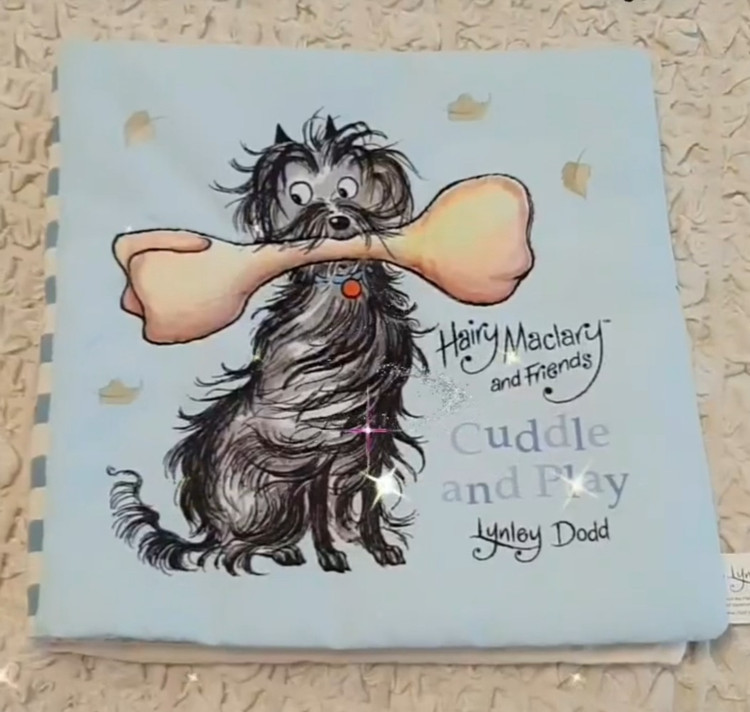 این محصول با پارچهای با بافت ابریشمی و دو برگ داخلی خشخشی دار، معرفی ایدهآل Hairy Maclary برای نوزادان تازه متولد شده است.