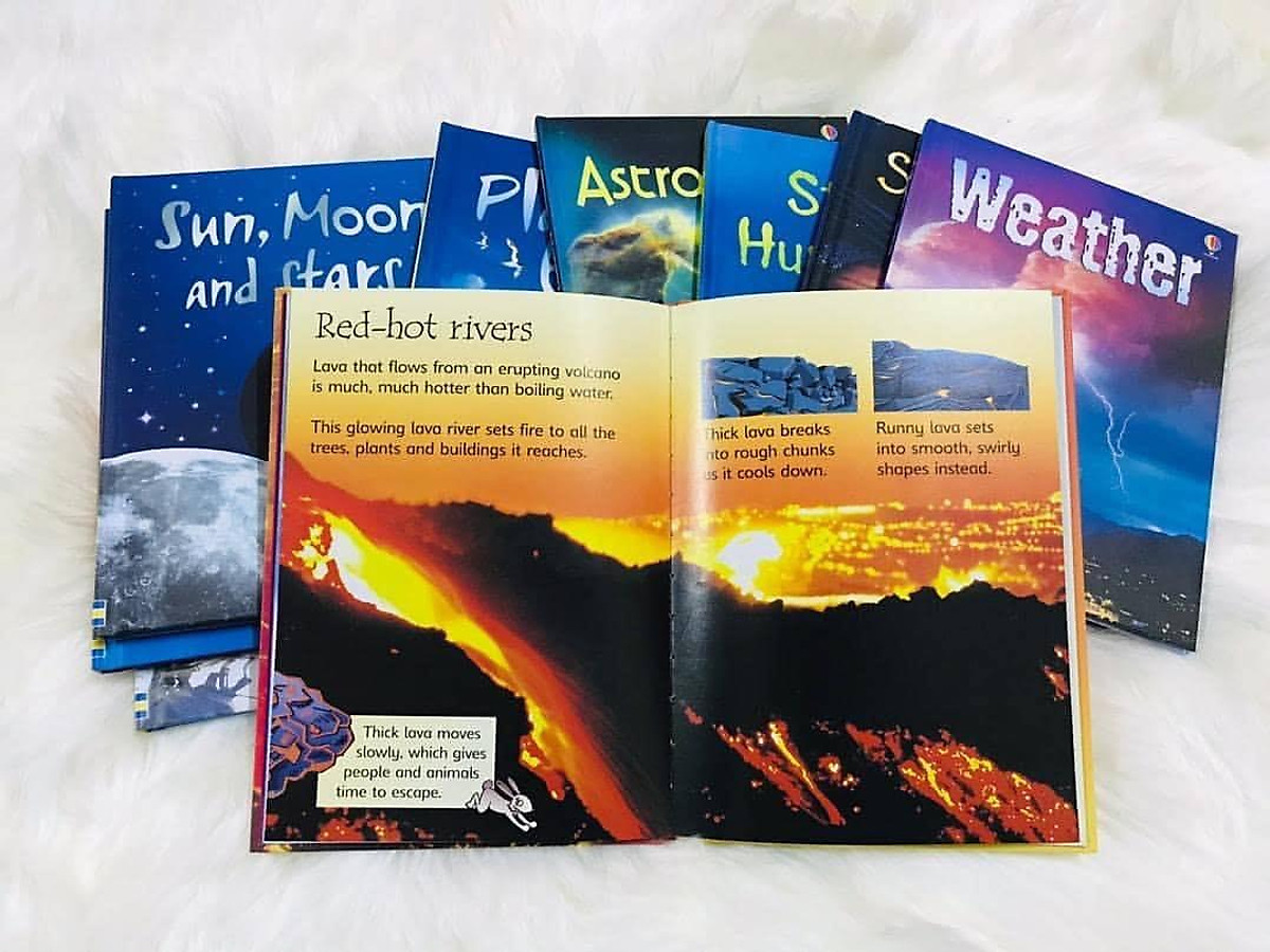 مجموعه ۱۰ جلدی کتابهای علمی برای کودکان و نوجوانان نشر معتبر usborne موضوعات جذابی چون بدن انسان، منظومه شمسی، آب و هوا، زندگی در فضا، آنشفشانها، فضانوردی، ماه و زمین و خورشید، طوفانها، کره زمین، زمین لرزه ها و ...