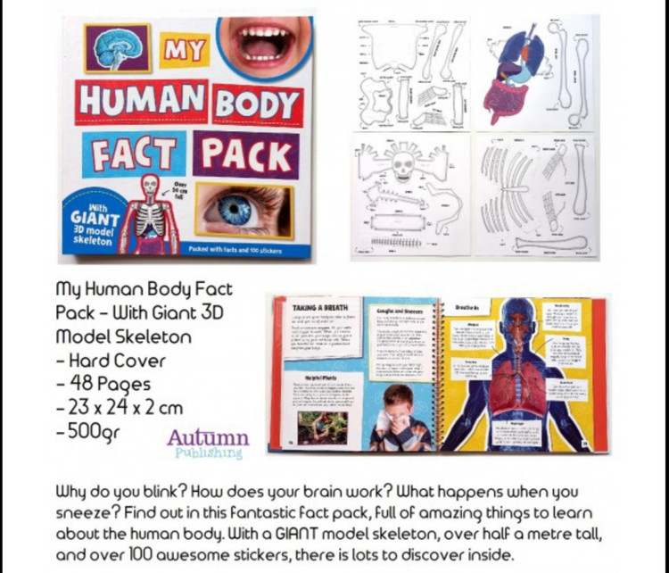 همراه با قطعات ساخت یک ماکت بزرگ اسکلت بدن انسان و اعضا داخل قفسه سینه، ارتفاع ماکت بیش از ۵۰ سانت می باشد بسیار عالی برای یادگیری بدن انسان