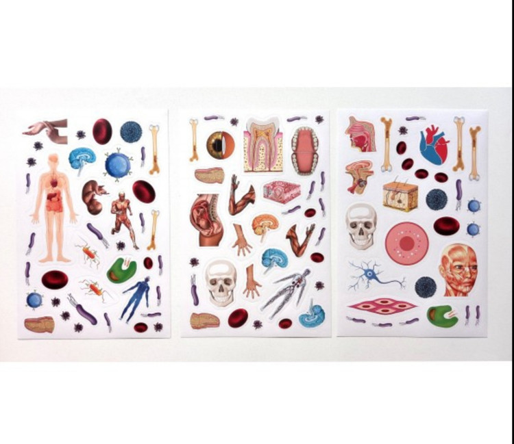 قطعات ساخت ماکت بزرگ اسکلت ، سه صفحه برچسب اعضا بدن انسان