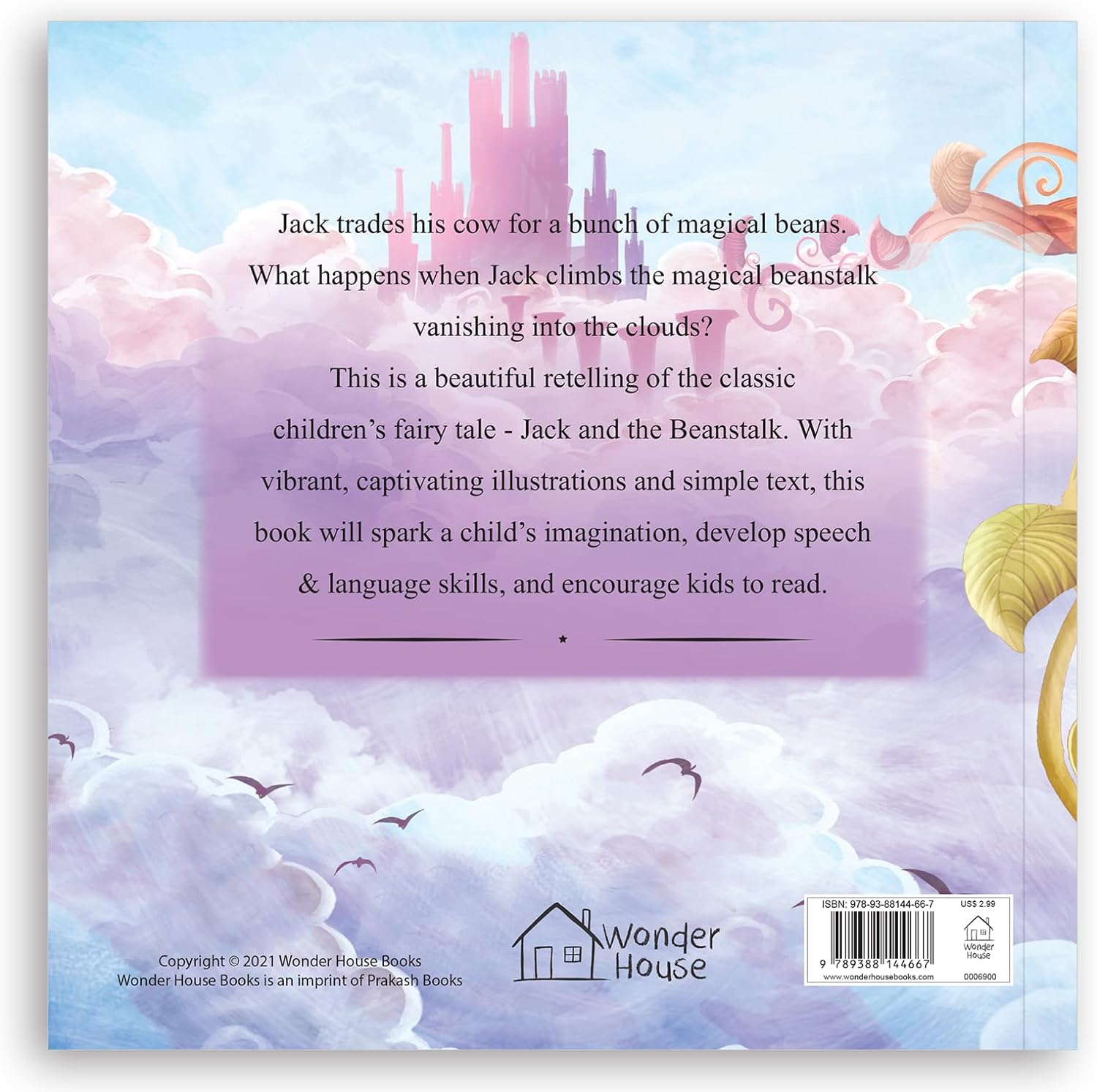 جک گاو خود را با چند لوبیا جادویی معاوضه می کند. وقتی جک از ساقه لوبیا جادویی که در ابرها ناپدید می شوند، بالا می رود، چه اتفاقی می افتد؟ این یک بازگویی زیبا از افسانه کلاسیک کودکان - جک و لوبیا است. با تصاویر پر جنب و جوش و جذاب و متن ساده، تخیل کودک را تحریک می کند، مهارت های گفتاری و زبانی را توسعه می دهد و به خواندن کتاب تشویق می کند.