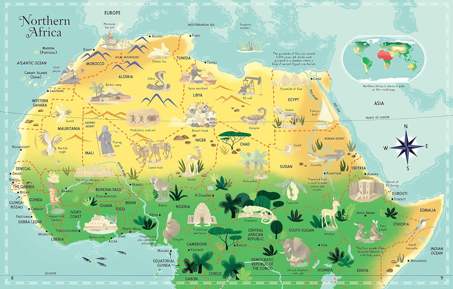 سفری تعاملی در سراسر جهان، که در آن کودکان میتوانند برچسبهای مکانهای دیدنی، حیوانات و افراد را در مکانهای مناسب قرار دهند و در حین رفتن بیشتر درباره جهان بیاموزند. تصاویر جدید و مدرن این اولین اطلس پر جنب و جوش و جذاب را تبدیل کرده است.