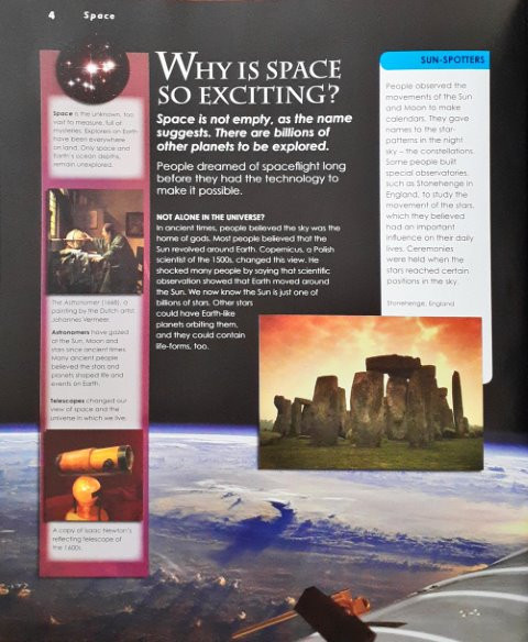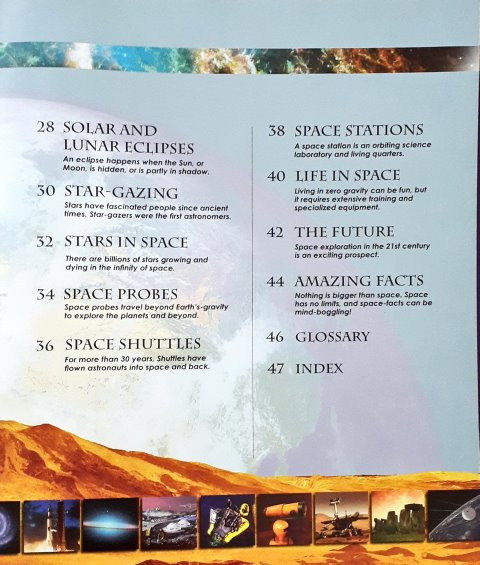 این کتاب پر از اطلاعات در مورد منظومه شمسی ما از جمله سیارات، صورت های فلکی و ستارگان است.