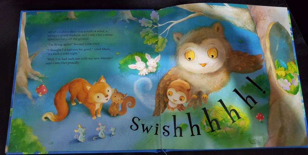در پایان کتاب با باز کردن آخرین صفحه فضای سه بعدی دیده میشود و صدای جغد کوچولو که توی بغل مامانش خوابیده شنیده میشه