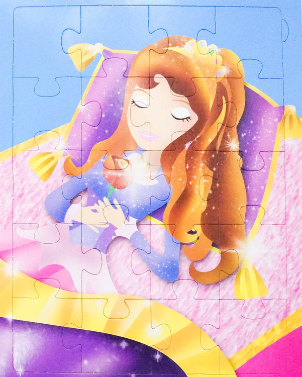 آیا زیبای خفته از نفرین پری شیطانی نجات خواهد یافت؟ همانطور که داستان را می خوانید متوجه شوید و هر بار که صفحه را ورق می زنید یک پازل دلربا را تکمیل کنید! برای سنین 3 سال به بالا