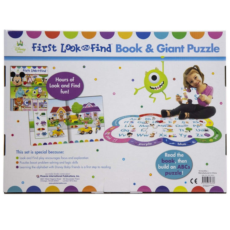 ۷ صحنه پر جنب و جوش را برای شخصیتها و اشیاء پنهان از A تا Z جستجو کنید. کوچولوها میتوانند به تنهایی جستجو، نقطهگذاری، تطبیق و مقایسه کنند و در عین حال مهارتهای واژگان و تشخیص حروف خود را ایجاد کنند. سپس، به صفحات آخر کتاب بپردازید تا فعالیتهای دیگری را ببینید و پیدا کنید که مراقبان و کودکان میتوانند با هم از آن لذت ببرند. وقتی کارتان تمام شد، پازل کف غول پیکر را کنار هم بگذارید تا سرگرمی بیشتری ببینید و پیدا کنید! طرفداران کوچک دیزنی این کتاب و مجموعه پازل را دوست خواهند داشت. کتاب First Look and Find صحنههای هیجانانگیزی با بازی بازیگران مورد علاقه دیزنی مانند میکی، مینی، سیمبا، نمو، اولاف و غیره دارد! این مجموعه ویژه است زیرا: بازی نگاه و پیدا کردن تمرکز و کاوش را تشویق می کند پازل ها مهارت های حل مسئله و منطقی را تقویت می کند یادگیری الفبا با دوستان دیزنی بیبی اولین گام برای خواندن است شامل یک دسته کامل از شخصیت های دیزنی: میکی موس، مینی موس، دیزی داک، دونالد اردک، مسخره، و پلوتون از باشگاه میکی موس. سیندرلا؛ زنگ از Beauty and the Beast; شفق قطبی، فلور، جانوران، و هوای شاد از زیبای خفته. نمو از Finding Nemo; دامبو؛ اولاف از فروزن; سیمبا از شیر شاه; و بیشتر!