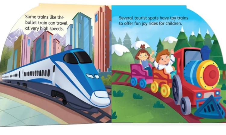 My First Shaped Board، زبان آموزان جوان را سوار قطار میکند و آنها را با انواع قطارها و کاربردهای آنها آشنا میکند. تصاویر زیبا و جملات ساده در این کتاب عشق به مطالعه را در بین افراد مبتدی القا می کند.