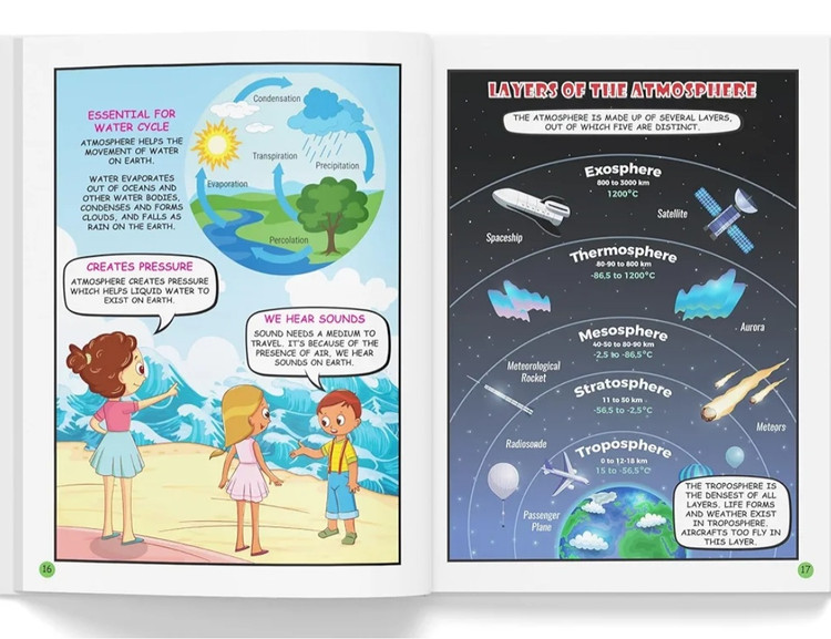 زمین چگونه تشکیل می شود؟ از چه چیزی تشکیل شده است؟ در جو اطراف زمین چه اتفاقی می افتد؟ چقدر با جو فاصله داریم؟ جو چند لایه دارد؟ زمین و جو یک کتاب ایده آل برای پاسخ به تمام سوالات شما است. این کتاب با دقت مدیریت شده مفاهیم و حقایق را در زمین و جو ساده کرده است که به زبانی خوانا همراه با تصاویر زرق و برق دار نوشته شده است. بیایید کمی دور بچرخیم تا با هواپیماها، شهاب ها، سفینه های فضایی و موارد دیگر ملاقات کنیم! کتابی با مفاهیم ساده علم برای کودکان تصاویر پر جنب و جوش تجربه یادگیری سرگرم کننده برای کودکان خواندن را در کودکان تشویق می کند حس کنجکاوی را در ذهن جوان ایجاد می کند.