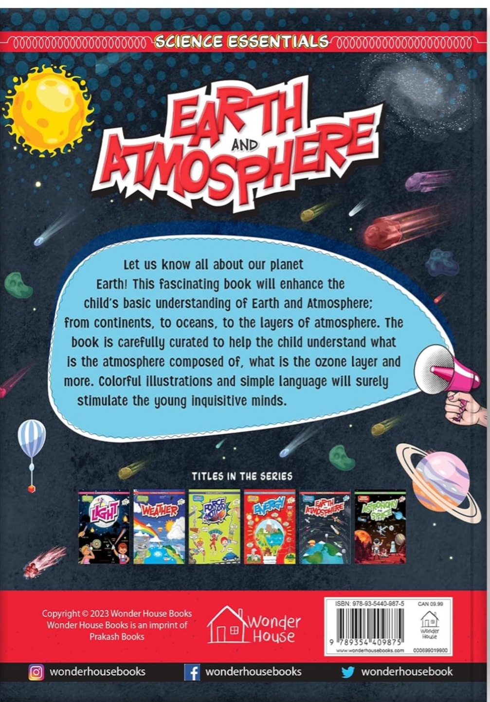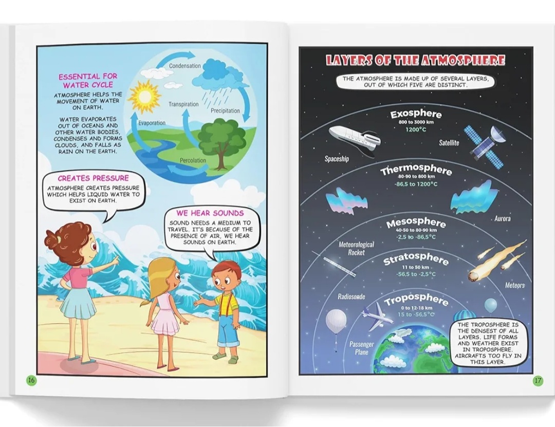 زمین چگونه تشکیل می شود؟ از چه چیزی تشکیل شده است؟ در جو اطراف زمین چه اتفاقی می افتد؟ چقدر با جو فاصله داریم؟ جو چند لایه دارد؟ زمین و جو یک کتاب ایده آل برای پاسخ به تمام سوالات شما است. این کتاب با دقت مدیریت شده مفاهیم و حقایق را در زمین و جو ساده کرده است که به زبانی خوانا همراه با تصاویر زرق و برق دار نوشته شده است. بیایید کمی دور بچرخیم تا با هواپیماها، شهاب ها، سفینه های فضایی و موارد دیگر ملاقات کنیم! کتابی با مفاهیم ساده علم برای کودکان تصاویر پر جنب و جوش تجربه یادگیری سرگرم کننده برای کودکان خواندن را در کودکان تشویق می کند حس کنجکاوی را در ذهن جوان ایجاد می کند.