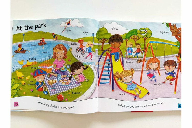 صفحات بزرگ با تصاویر پررنگ و زیبا سوالات ساده و سرگرم کننده پشتیبانی از یادگیری شامل پوستر (750 x 500 میلی متر) هر صفحه آثار هنری روشن و رنگارنگ پر از جذابیت و جزئیات را برای تحریک بحث و کمک به کودکان نوپا در یادگیری مفاهیم کلیدی به نمایش می گذارد.