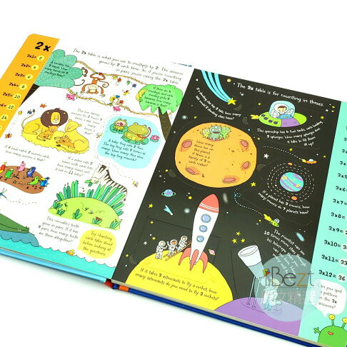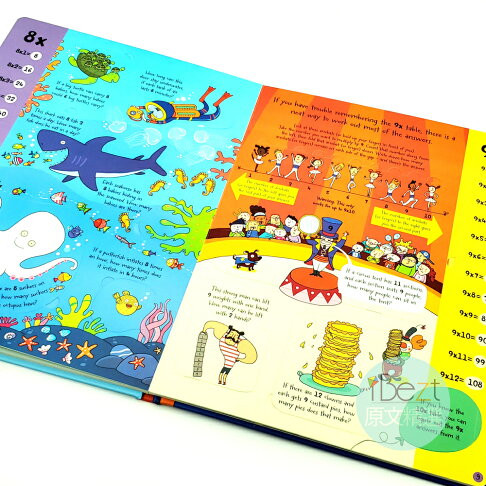 ، و همچنین یک ماشین اعداد برای پاسخ به هر سوال جداول است. تصاویر طنز و سوالات سرگرم کننده به کودکان کمک می کند تا دریابند چرا جدول ضرب مفید است و یک چالش در پایان آنها را تشویق می کند تا دانش جدید خود را آزمایش کنند. یک کتاب سرگرم کننده برای والدین و فرزندان برای به اشتراک گذاشتن با هم
