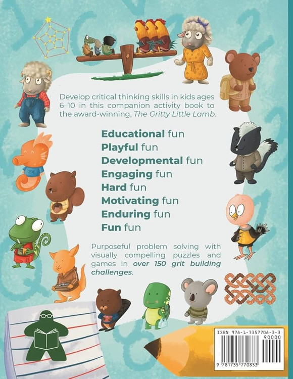 سرگرمی آموزشی از طریق قوانین ساده، فعالیتهای جذاب، چالشهای متنوع و شخصیتهای بازیگوش. پازلها و بازیهای جذاب بصری، کودکان را در حل هدفمند مسئله و توسعه مهارت STEM از طریق چالشهای ریزدانه مشارکت میدهد. بیش از 150 فعالیت مناسب از نظر رشدی بر اساس موضوع سازماندهی میشوند و طیف گستردهای از یادگیرندگان را مجذوب خود میکنند. استدلال فضایی معماهای ریاضی مشکلات منطقی بازیهای لفظی تمرکز فعالیتها بازیهای دو نفره هر بخش دارای کفی کم اما سقف بلندی است زیرا پازلها در سختی رشد میکنند و الهامبخش کودکان از طریق موفقیت اولیه است که انگیزه تعامل مداوم را ایجاد میکند. شخصیتهایی که به زیبایی تصویر شدهاند توجه را به خود جلب میکنند و پیامهای الهامبخشی که با قافیههای روحی نوشته شدهاند، تشویق میشوند و در عین حال تمرکز را از استرس تسلط بر مهارت دور میکنند. بیش از 80 نوع پازل منحصربهفرد ارائه فرصتهای متنوع را در اولویت قرار میدهند، زیرا بچهها از طریق فعالیتهای معنادار برای ایجاد مهارتهای اساسی حل مسئله و تفکر انتقادی اساسی برای همه برنامههای درسی کار میکنند. پاسخ ها در پشت کتاب ارائه شده است و گواهی موفقیت در آن گنجانده شده است که پس از اتمام قابل ارائه است.
