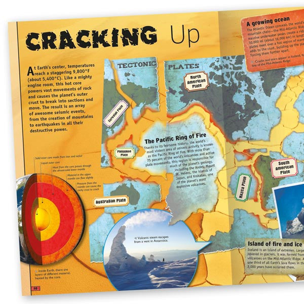 کودکان بالای 9 سال از ابتدا تا انتها مجذوب و هیجان زده خواهند شد. هیجان انگیز ترین اطلاعات و عکس ها برای علاقه مند نگه داشتن بچه ها مفاهیم طراحی خارق العاده مکمل هر موضوعی است تا بچه ها را به خود جذب کند همه چیز را از شگفتی های زیبا گرفته تا نیروهای طبیعی را پوشش می دهد چهار فصل شگفتانگیز در کتاب زمین: در زمین فعال، درباره نیروهای طبیعی که دائماً سیاره ما را تغییر میدهند، اطلاعات بیشتری کسب کنید.