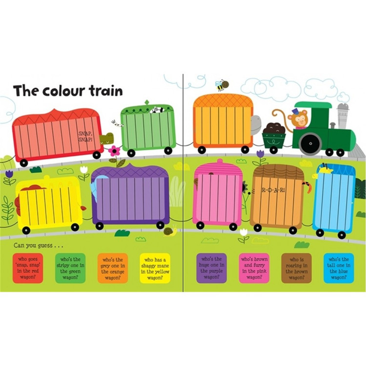 این کتاب درباره ی رنگها پنجره های جالبی دارد که کودک پس از حدس پاسخ می تواند بازشو کوچک را بلند کند و پاسخ را ببیند.