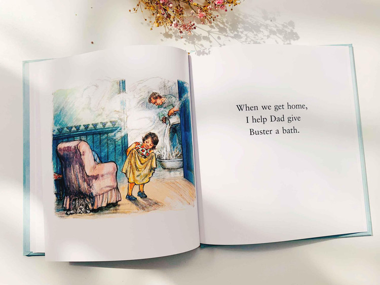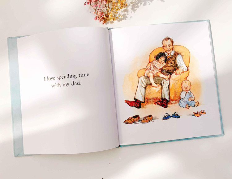 در این نسخه هدیه خیره کننده، کتی و برادر کوچکش الی از روز خود با پدر به ما می گویند. از لذت بیدارکردن پدر در صبح، گذراندن یک روز با هم در کنار دریا یا حتی داستانهایی با پدر هنگام خواب، این داستان شاد تصویری لحظهای از روز کودک به خوانندگان ارائه میدهد و پیوند ویژه پدر و فرزند را جشن میگیرد.