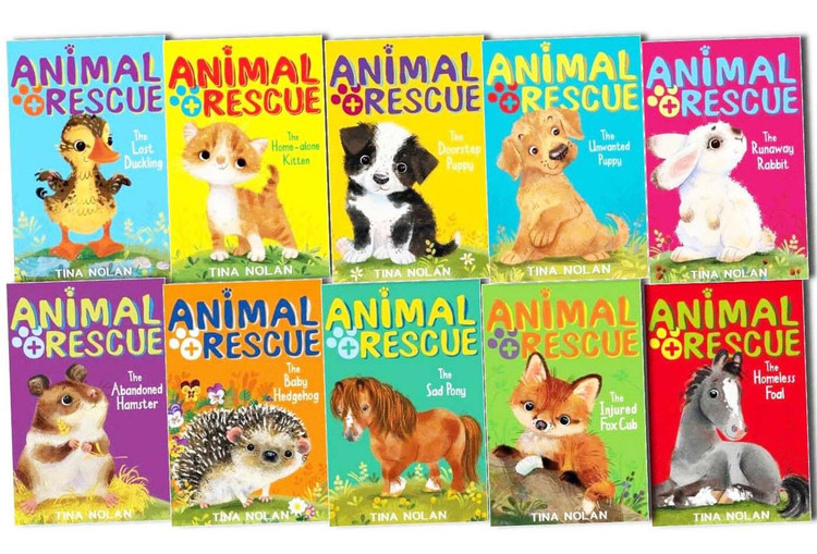 Animal Rescue 10 Books Collection Set by Tina Nolan Titles in the Set The unwanted Puppy, The Home-Alone Kitten, The Homeless Foal, The Injured Fox Cub, The Runaway Rabbit, The Sad Puppy, The Doorstep Puppy, The Baby Hedgehog, The Abandoned Hamster, The Lost Duckling