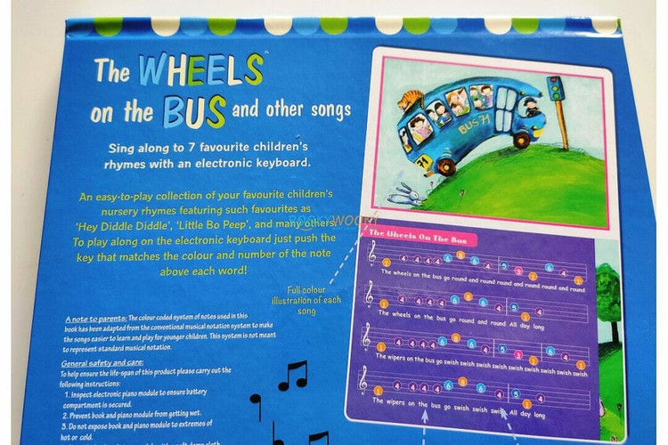 صفحهکلیدی آسان برای پخش که مطمئناً بچهها آن را دوست خواهند داشت. شعرهای کتاب همراه با نتهایی برای نواختن هر کلمه نوشته شدهاند. و واقعاً نواختن آن آسان است، زیرا برای نواختن آن، باید کلیدهای پیانو را فشار دهید که با رنگ و شماره نوشته شده روی نتهای مربوط به کلمات مربوطه مطابقت دارند آنها با این قافیه ها می خوانند در حالی که با پیانوی خودشان می نوازند