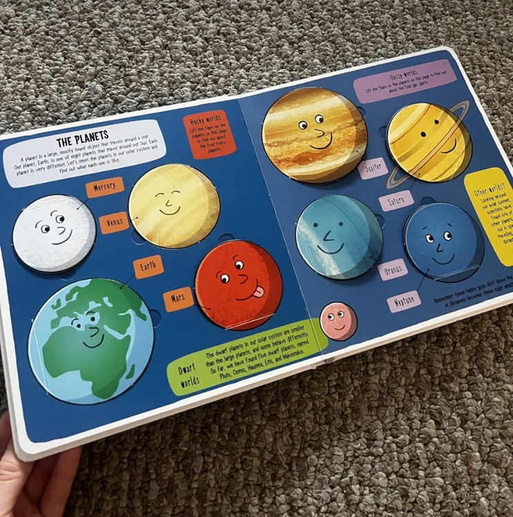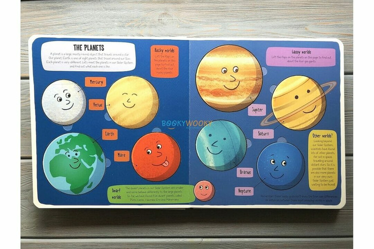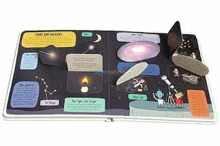 «فضای بیرونی» مقدمهای زنده بر دنیای فضا است، جایی که کودکان میتوانند فلپها را بالا ببرند تا درباره آنچه فراتر از زمین ماست، بیاموزند.