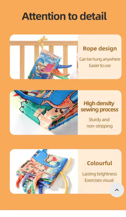از جنس پلیاستر، تصاویر کارتونی، رنگهای روشن، کتاب فعالیتهای آموزشی کودکان نوپا ساخته شده است.