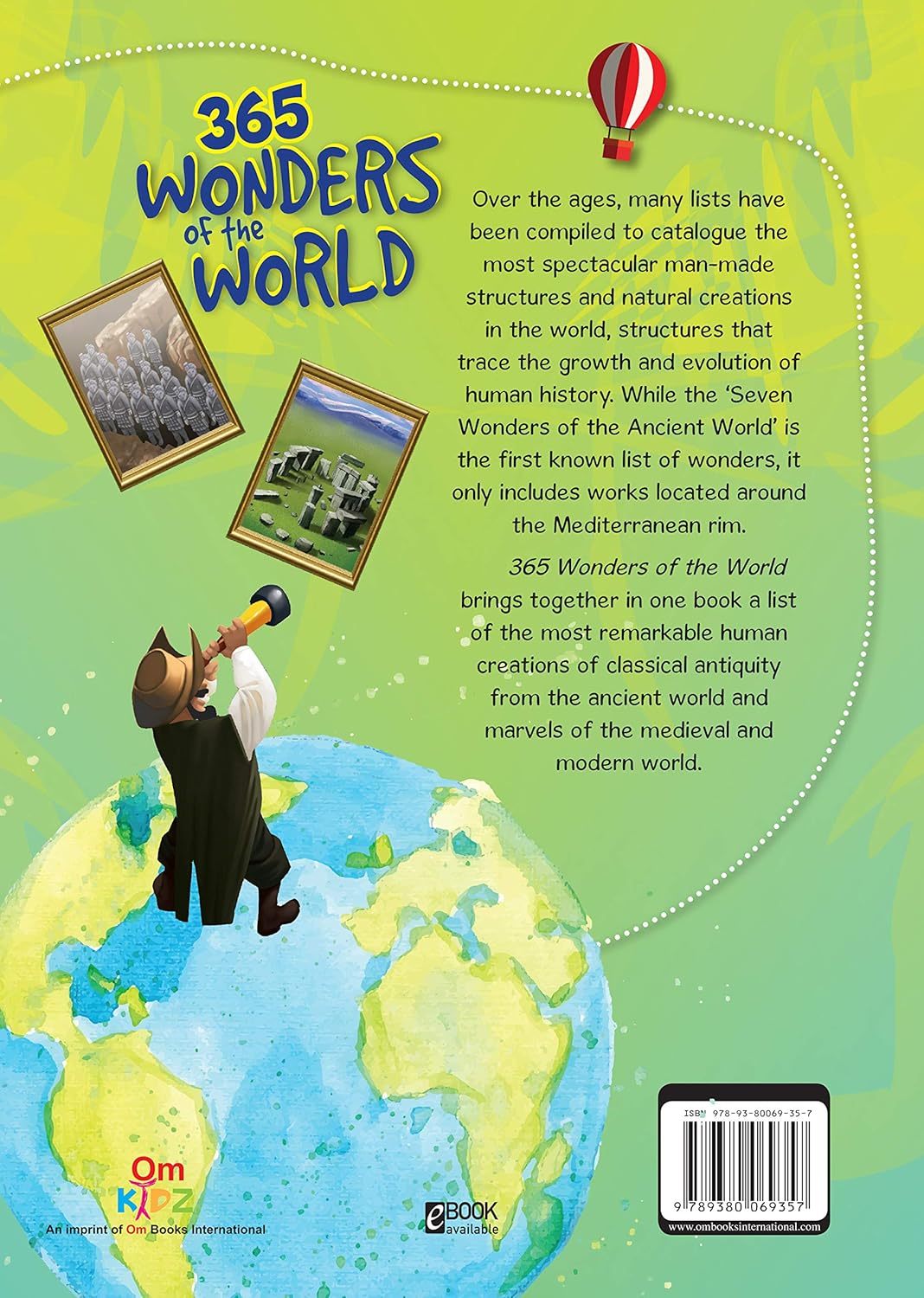 کتاب «۳۶۵ شگفتی جهان» شگفتیهای باستانی، قرون وسطایی و مدرن را در سطح جهان گردآوری کرده و تکامل تاریخ بشر را فراتر از «هفت شگفتی جهان باستان» به نمایش میگذارد.