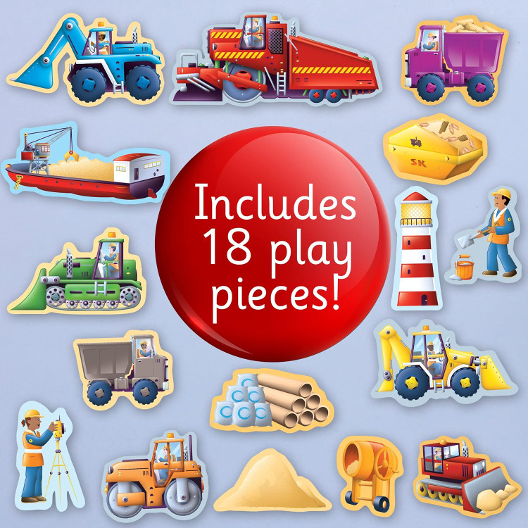 از غلتک و میکسر گرفته تا کامیون کمپرسی و بولدوزر، کودکان ۳ سال به بالا از تطبیق قطعات بازی مغناطیسی رنگارنگ با داستان ساده این کتاب تعاملی و جدید لذت خواهند برد. با خواندن جملات ساده، کودک خود را در طول کتاب راهنمایی کنید و همه چیز را در مورد حفارها بیاموزید. سپس آنها را تشویق کنید تا آهنرباهای حفار، کمپرسی و مگا ماشین مناسب را پیدا کنند تا صحنههای رنگارنگ روی صفحات مغناطیسی را تکمیل کنند. کتاب «بیایید حفارها را بازی کنیم» به توسعه مهارتهای حرکتی ظریف و هماهنگی دست و چشم کودک شما کمک میکند. پس از پایان بازی، قطعات بازی مغناطیسی را میتوان به طور مرتب در محفظه داخلی قرار داد تا دفعه بعد برای بازی آماده باشند.