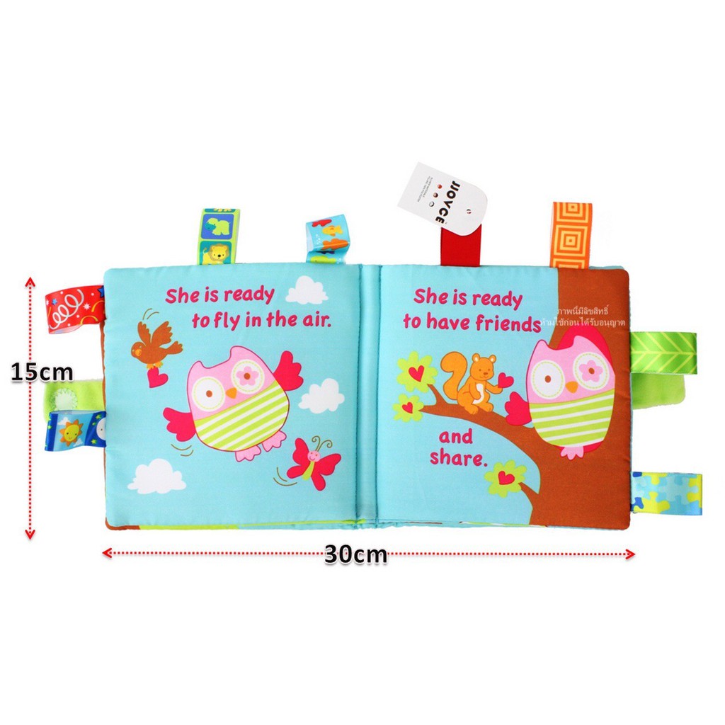 کتاب پارچه ای زیبای جغد با گلدوزی و بالهای برجسته از کتاب با تگ های رنگی جذاب مناسب کودکان زیر سه سال برای تقویت عضلات ظریف انگشتان دست.